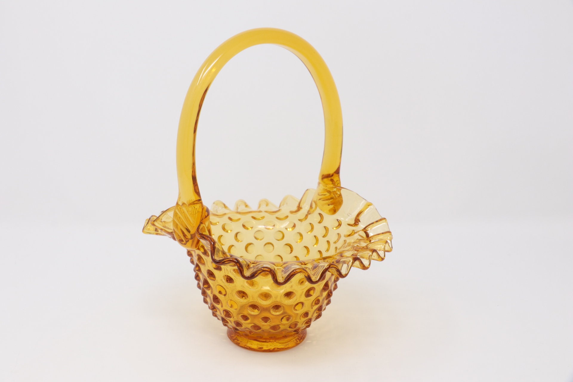 Fenton Hobnail Blue Glass Basket With Handle And Ruffled Edge Ebay